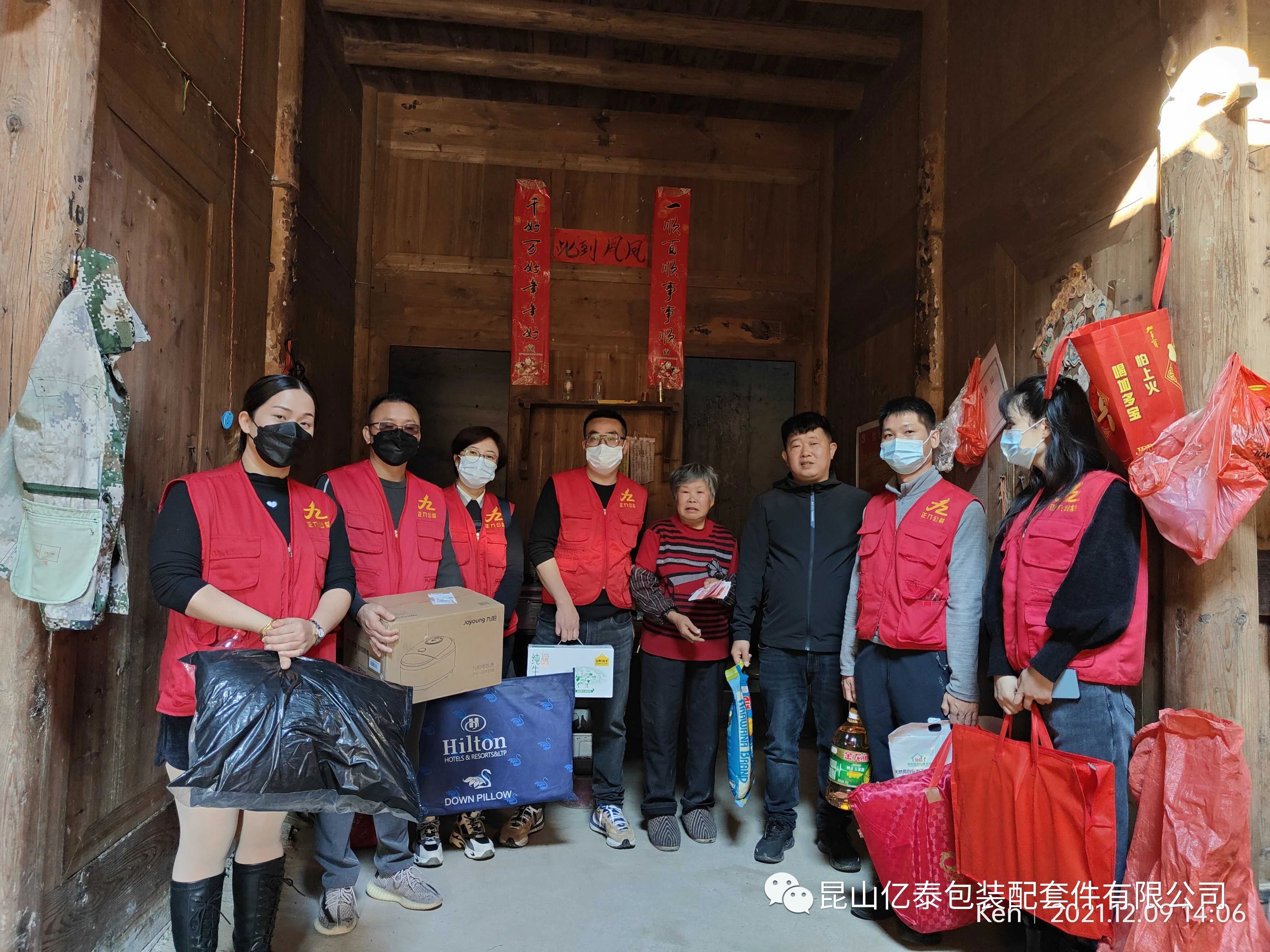 2021年12月9日,亿泰包装总经理徐建平女士与昆山市正九公益服务中心一同在闽东山区举行“冬日暖歌”,亿泰的志愿者一行十余人,组织开展了残疾人及独居老人慈善捐赠送温暖公益爱心活动,为这里的残疾人和老人献上了一份浓浓的爱心。